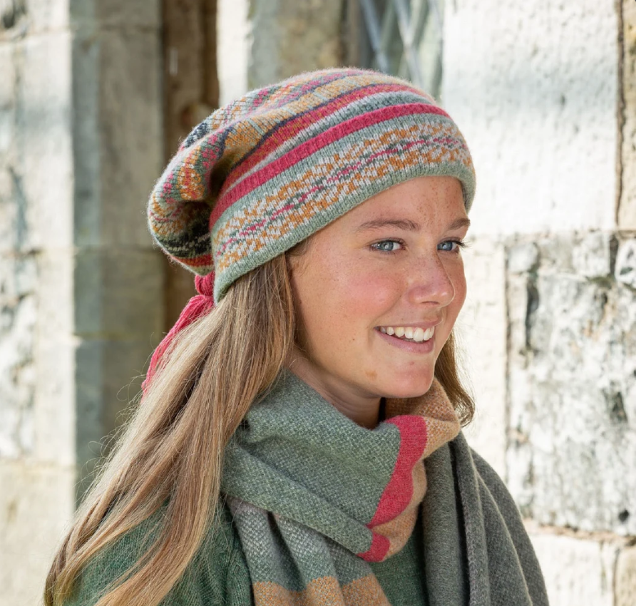 Inspired by the Scottish Landscape these beautiful products By Louise Wedderburn are a breath of Scottish fresh air. Made from soft merino wool she weaves all she sees into these earthy coloured designs that are also soft and cosy to wear. See below for matching products.