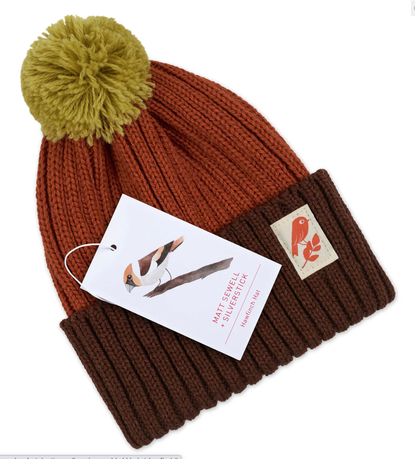 Part of our Matt Sewell + Silverstick collection. The colours of this hat are inspired by Matt’s painting of the Hawfinch, an endangered bird on the UK’s red list.