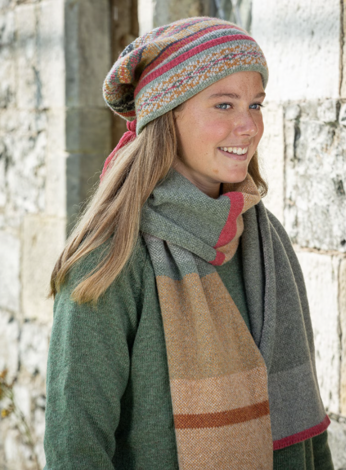 Inspired by the Scottish Landscape these beautiful products By Louise Wedderburn are a breath of Scottish fresh air. Made from soft merino wool she weaves all she sees into these earthy coloured designs that are also soft and cosy to wear. Each scarf has other accessories that go with them in each colour story.