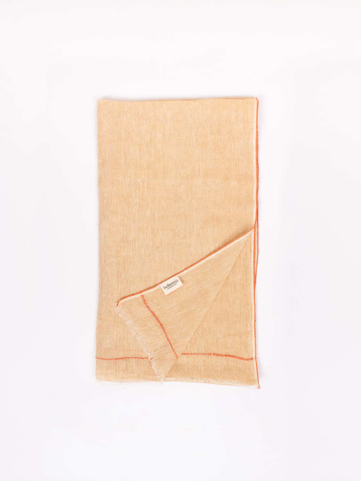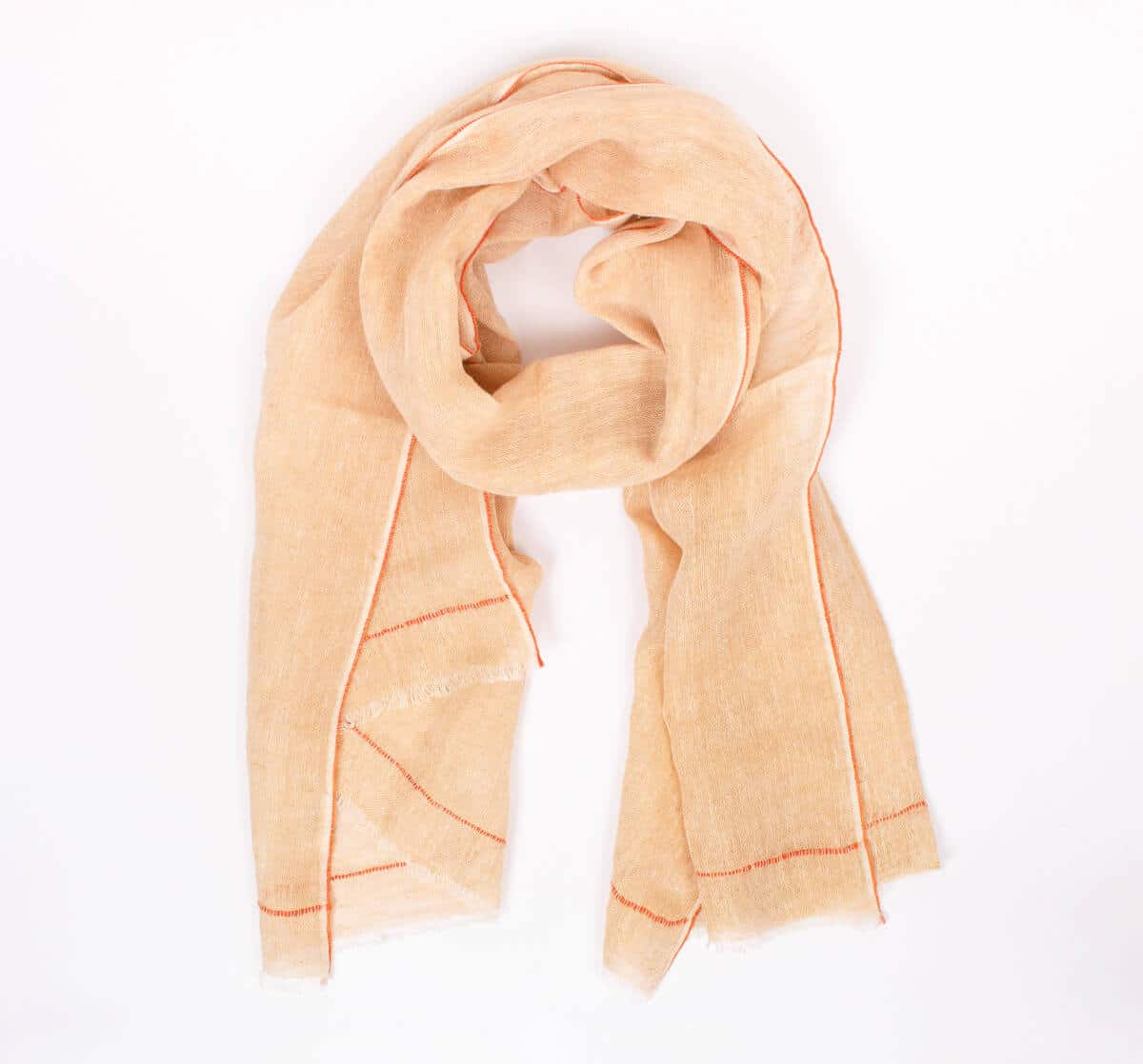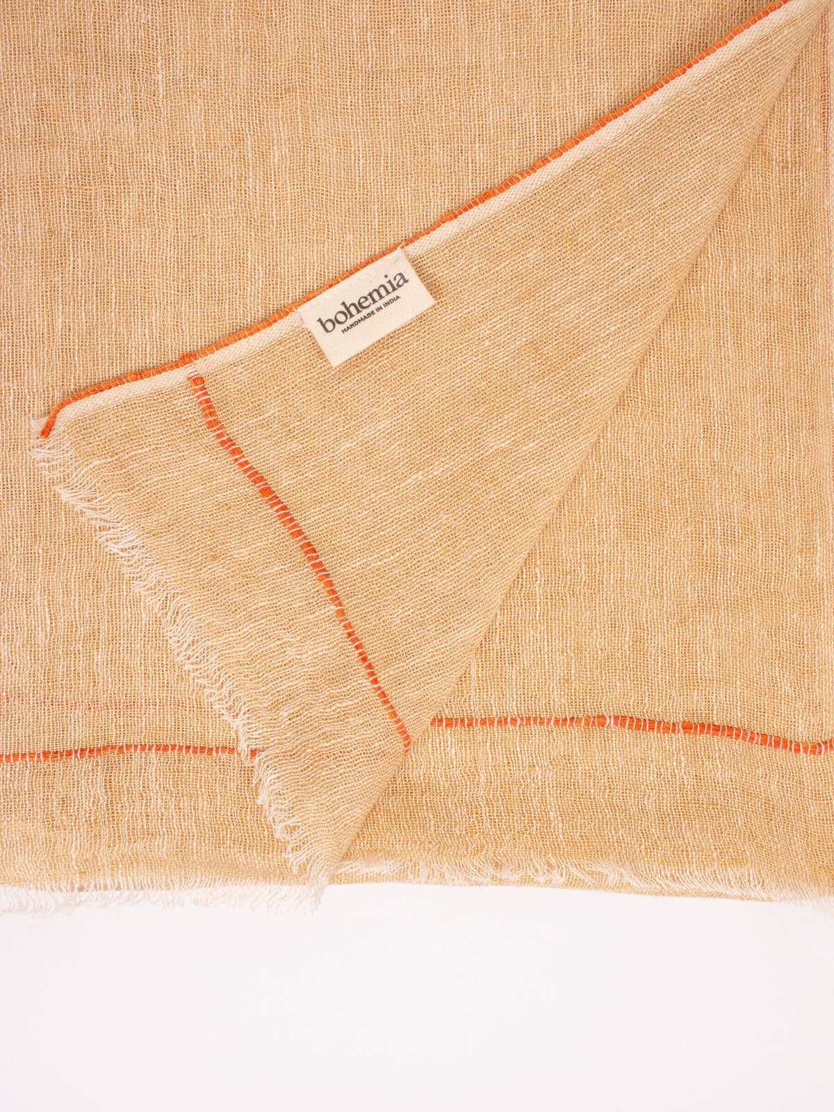 Linen Scarf in mustard with delicate orange detailing to the edges. These natural linen scarves are handwoven in India in collaboration with a family who have a long history of weaving fabrics.